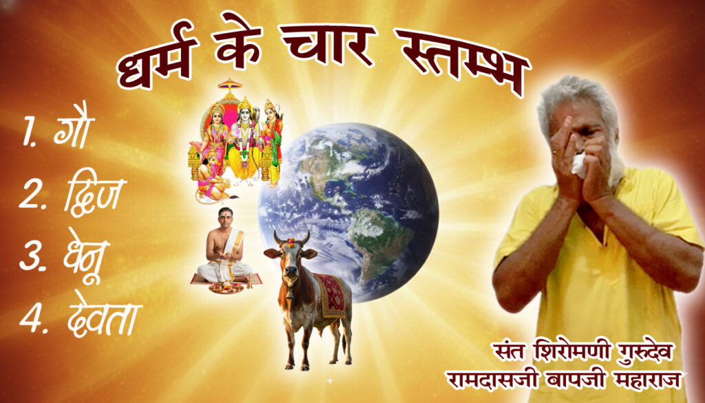 Saint Shiromani Shri Ramdas Ji Bapji Maharaj of Punasar Ashram has presented a highly significant ideological article on the foundation of Sanatan Dharma and its present condition. According to Maharaj Ji, just as a cart runs on four wheels, similarly, Dharma is supported by four pillars. If these pillars become weak, the destruction of both Dharma and the world is inevitable.